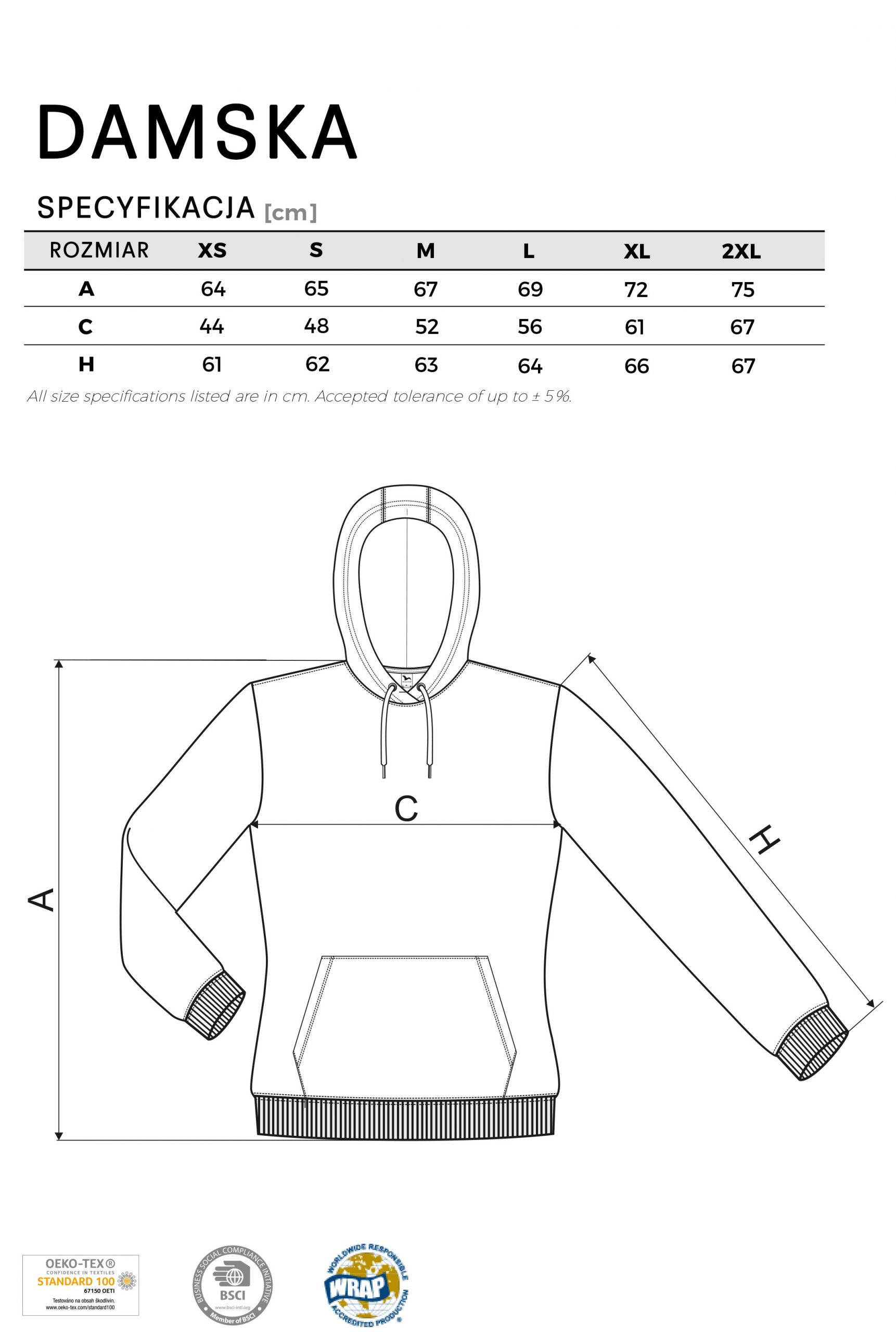 Materiał: czesana strona wewnętrzna, 65% bawełna, 35% poliester; 320 g/m²